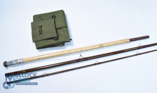 B James & Son in association with Bruce & Walker "The Avon Perfection" hollow glass rod 12ft 3pc 27" handle with alloy sliding reel fittings, agate butt/tip rings, stand off rings throughout