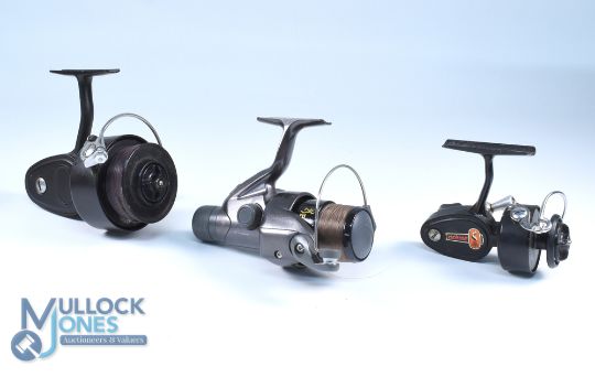 Mitchell 306 fixed spool reel, LHW, good bail, runs well, light use; Mitchell 308 fixed spool reel "The Prince" LHW, good bail, runs well; Browning Match fixed spool reel, good bail, counter balanced handle, rear tensioner, runs well. All three reels in zipped reel case. (3)W, good bailb
