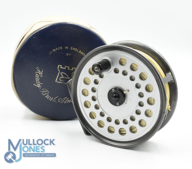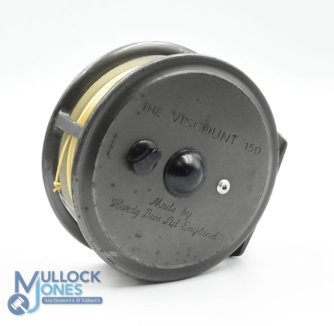 Hardy Bros "The Viscount 150" alloy trout fly reel 3 7/8" ventilated spool, 2 screw latch, black handle, rear tensioner, strong constant check, MZC. Very light use