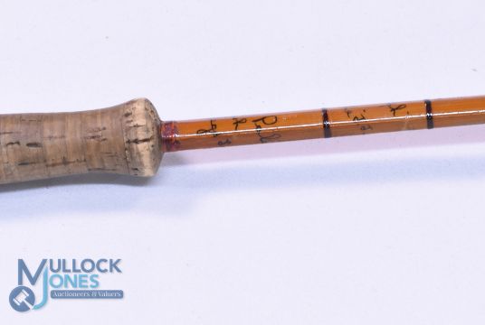 Hardy Alnwick "The J J H Triumph" Palakona split cane trout fly rod E90856, 9ft 3pc with spare tip (one tip 3" short), alloy sliding reel fittings, clear agate butt/tip rings, MCB (rod in hand logo). Looks very original