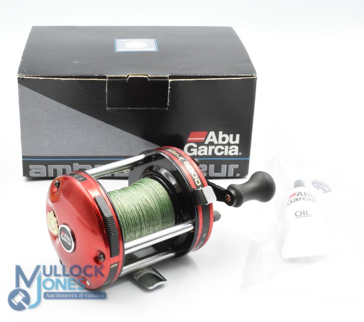 Abu Ambassadeur 6000C Ultra-Cast high speed multiplier No 990202, twin handles, spindle tensioner, rim mounted on/off check, in box with instructions and oil, light use, runs well