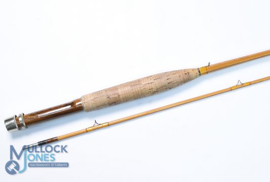 Partridge Maker England "The Warton Master" Series, split cane trout fly rod 7ft 6" 2pc line 5#, anodised alloy sliding reel seat and collar with burr wood insert. In cloth bag, very light use