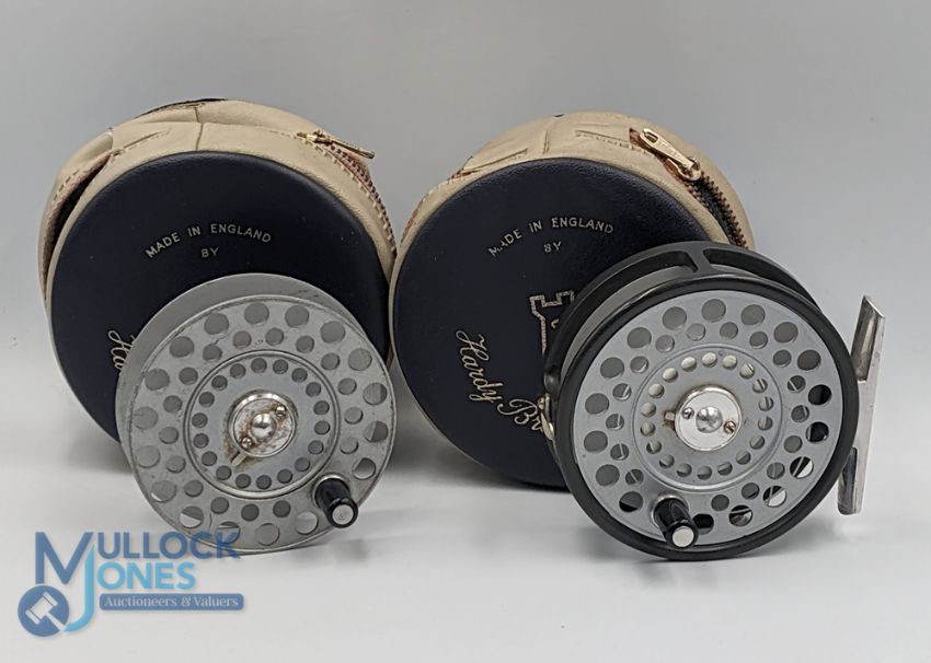 Hardy Bros fine LRH lightweight alloy fly reel with spare spool, 2 screw latch and black handle, milled rim tensioner, 'U' shaped alloy line guide and foot, 2 MZC, very light use