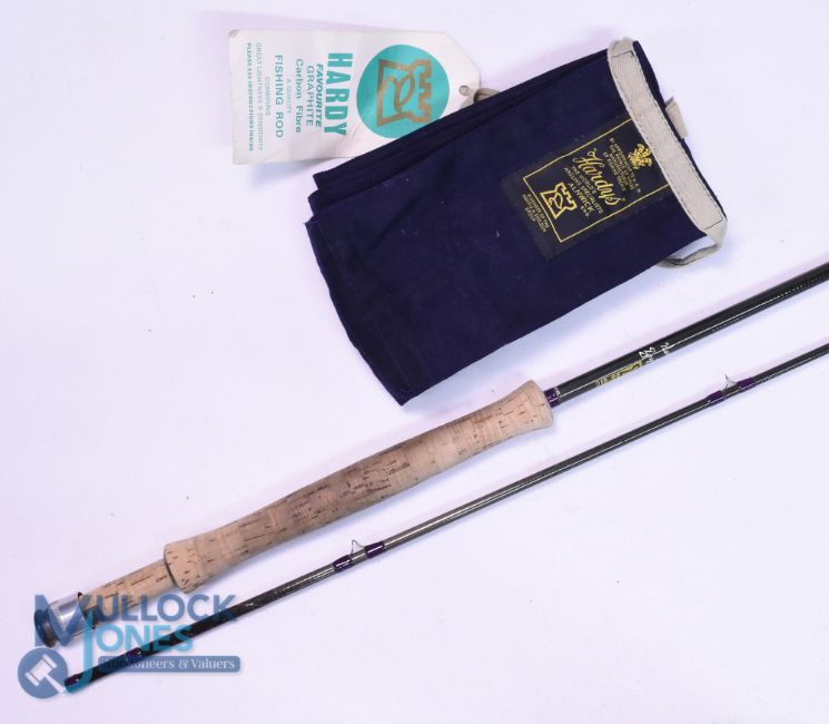 Hardy "Favourite" graphite trout fly rod 9ft 6" 2pc, line 7/8#, uplocking reel seat, lined butt ring, MCB with original swing label. Very light use