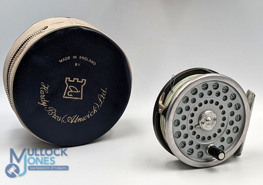 Hardy Bros "The Marquis 6" alloy trout fly reel, 3 1/4" ventilated spool with 2 screw latch and black handle, 'U' shaped alloy line guide and foot, rear tensioner with constant check, in MZC, very light use and runs well