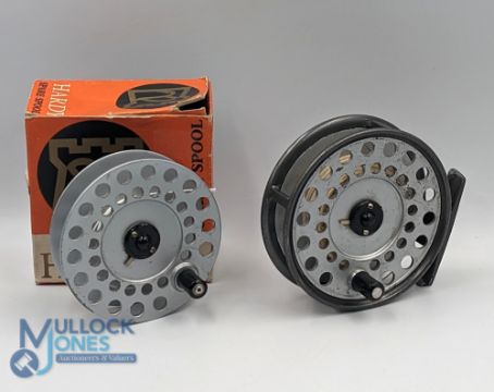 Hardy Bros "The Viscount" alloy trout fly reel and spare boxed spool, 3 1/2" ventilated spool, 2 screw latch, rear tensioner, strong constant check, very light rim wear
