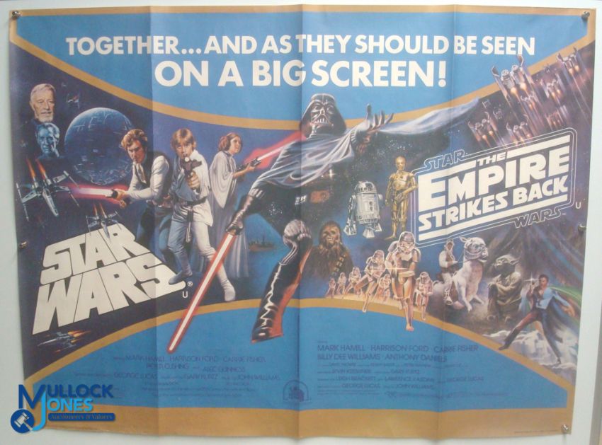 Original Movie/Film Poster – Double Bill from the 1980s Star Wars / Empire Strikes Back 40x30" approx. kept rolled, creases apparent, originally folded into 8 Ex Cinema Stock