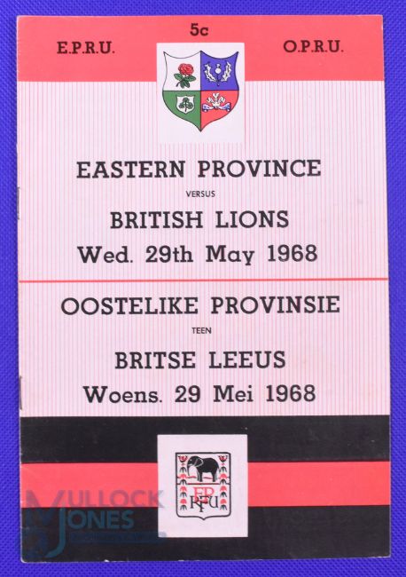 1968 British and I Lions Rugby Programme v Eastern Province: At Port Elizabeth 29/5/68 8pp, compact issue in VG condition