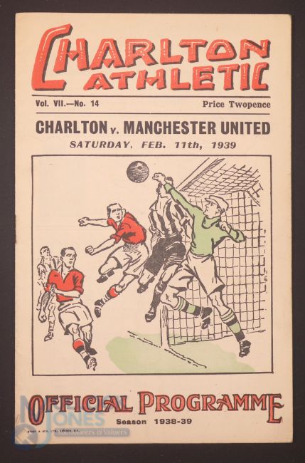 Pre-War 1938/1939 Charlton Athletic v Manchester Utd. Div. 1 match programme 11 February 1939; fair/good. (1)