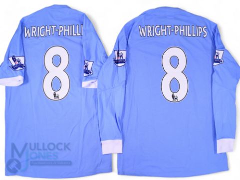 2x 2010/11 Shaun Wright-Phillips No 8 Manchester City match issue home football shirts - in blue, Umbro/Etihad, with Barclays Premier League shoulder patches, short sleeve, size 40 - obtained via team personnel (2)