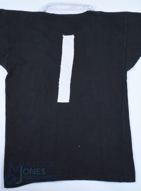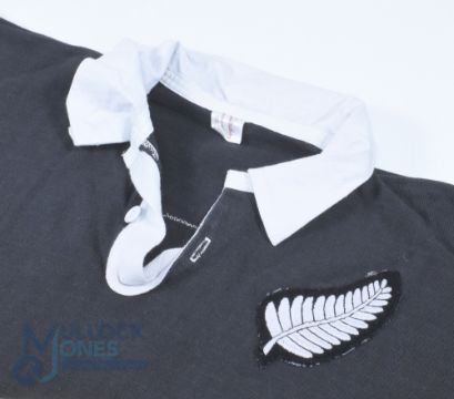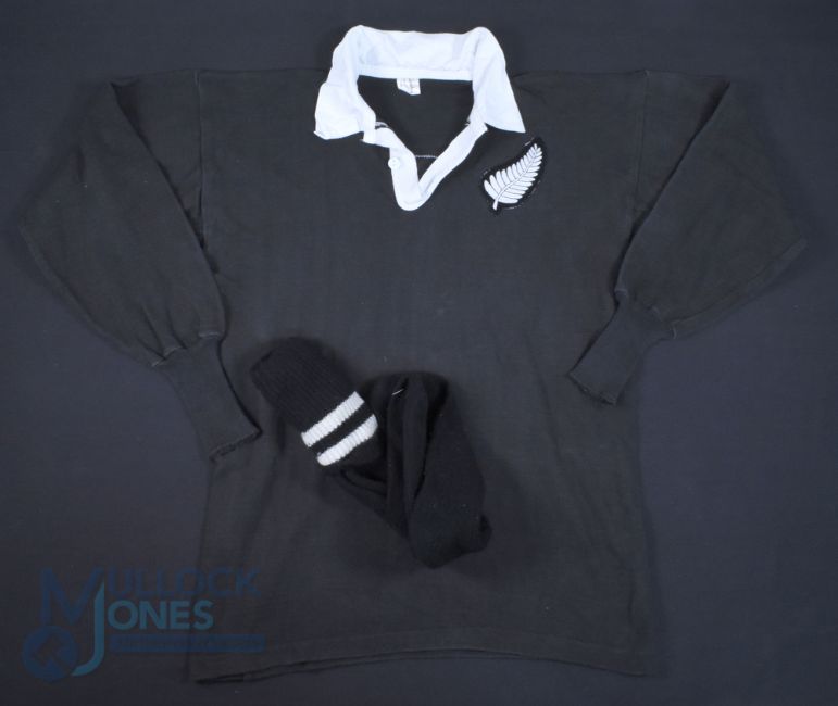Rare: New Zealand Legend Don Clarke's All Black Jersey & Socks, 1964: What a chance to obtain the All Blacks' No.1 jersey (full back, then) of one of NZ's greatest names, the 31-caps, siege-gun booted, hefty but happy-to-attack DB 'Don' Clarke, scourge of opponents who conceded penalties, even in their own half on occasions. This splendid classic black jersey, Canterbury-made with silver fern badge and white '1' stitched to rear, was exchanged by 'The Don' with England captain and Lions full-back John Willcox, after the tourists had defeated England 14-0 in January 1964. It comes with the great man's socks from the game too. VG