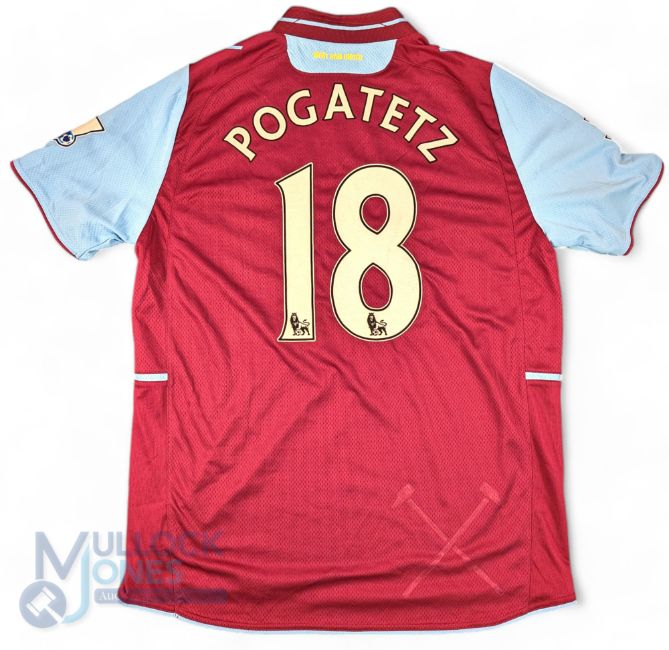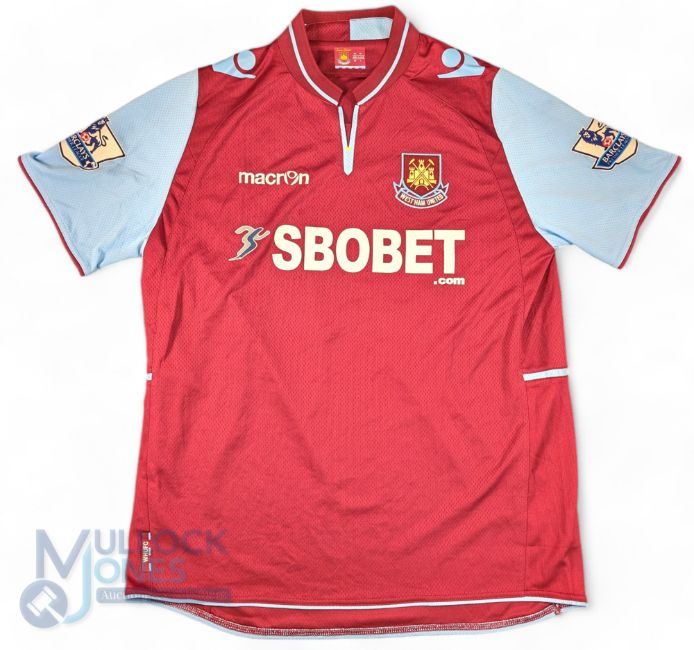 2012/13 Emanuel Pogatez No 19 West Ham United match worn home football shirt v Tottenham Hotspur 25 Feb, claret and blue, Premier League shoulder patches, Macron/SBOBet, size L, short sleeve -obtained via team personnel