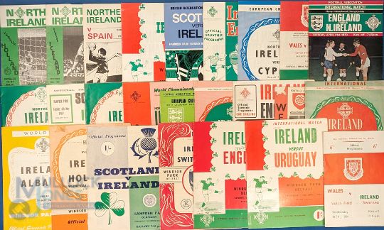 George Best international appearances collection for Northern Ireland in match programmes from 1964 v Wales (in Swansea- his debut) to 1977 v Iceland (Belfast 2nd last) v Netherlands (Belfast-final match); fair. (25)