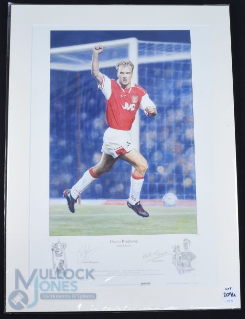 Dennis Bergkamp, Arsenal Autographed Limited Edition Colour Print 1/495 by Keith Fearon, signed by the artist also, both signatures in pencil to the border below, mounted ready to frame measures 51x69cm approx.