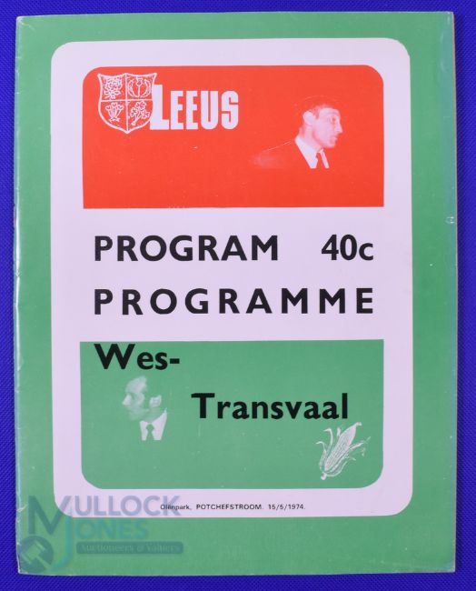 1974 British and I Lions v Western Transvaal Rugby Programme: At Potchefstroom. 48pp, excellent