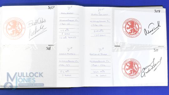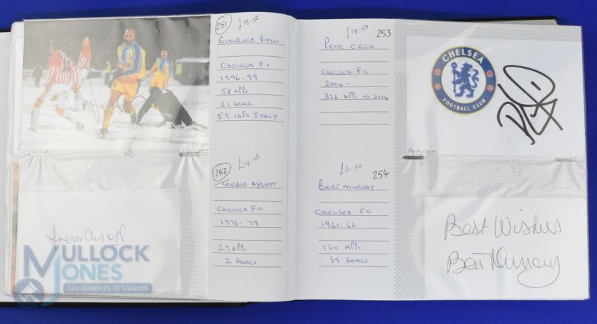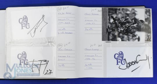 Volume of Football Player Autographs (individual signatures on white cards) to include Tottenham Hotspur - Alan Mullery, Gary Stevens, Jimmy Collins, John Pratt, Ted Ditchburn, Chris Adams, Paul Allen, Sergei Rebrov, George Robb, Dimitar Berbatov, Gustavo Poyet, Jimmy Greaves, Darren Anderton; Manchester Utd - Mike Phelan, Michael Stewart, Liam O'Brien, Tommy O'Neil, Ryan Giggs, Chris McGrath, Dwight Yorke, Kevin Moran; Chelsea - Ed de Goey, Jiri Jarosik, Tony Godden, Jason Cundy, Andy Townsend, Gianfranco Zola, Alan Birchenall, Nigel Spackman, Gianluca Vialli, Trevor Aylott, Petr Czech, Bert Murray; West Ham Utd - David James, Everald La Roude, Phil Parkes, Roger Cross, Svetoslav Todorov, Tim Breacker, Leyroy Rosenior, David Terries; Liverpool - Patrick Berger, Jimmy Case, Trevor Storton, Derek Brownhill, Francis Lane, Jack Whitham, Johnny Molyneux; Manchester City - Chris Glennon, Bobby McDonald, Barry Silkman, Kenny Clements, Alf Wood, Steve Daley, Derek Panter, Johnny Williamson, Barry Siddall, Joe Corrigan, Mike Doyle, Billy Haydock, Gary Owen, David Shawcross, John Benson, Mike Lester, Verdi Godwin, Chris Jones plus Newcastle Utd (8), Middlesbrough (3), Birmingham City (8), Ipswich Town (8), Leeds Utd (10), Everton (11), Derby County (6), Aston Villa (4) plus others (30+); superb collection on good condition (162+ in 1 file)