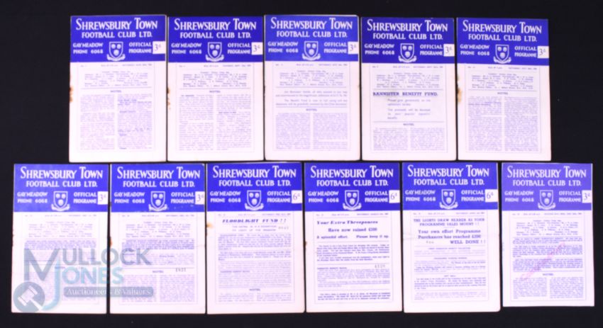 1956/57 Selection of Shrewsbury Town home match programmes v Gillingham, Bournemouth, Reading, Watford, QPR, Coventry City, Halifax Town, Plymouth Argyle, Norwich City, Southampton; fair. (10)