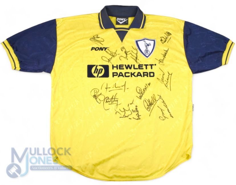 1995/96 Tottenham Hotspur Multi-Signed 3rd football shirt in yellow and blue, Pony/Hewlett Packard, size XL, 15x signatures to front in black ink - Shirt donated by the Club with Proceeds donated to the Derbyshire Fire & Rescue