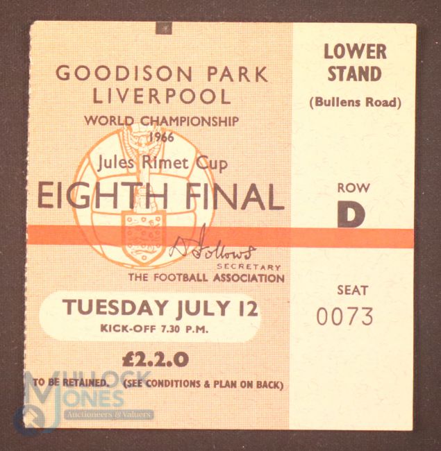 1966 World Cup 1/8 final Match Ticket Brazil v Bulgaria 12 July 1966 at Everton; fair. (1)