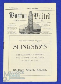 1946/47 Midland League match programme Boston Utd v Shrewsbury Town 22 March 1947; fair/good. (1)