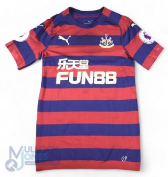 2018/19 Sean Longstaff No 36 Newcastle United match worn away football shirt v Tottenham Hotspur 2 Feb, with Premier League shoulder patches, Puma/Fun88, blue and red, size L, short sleeve - obtained via team personnel