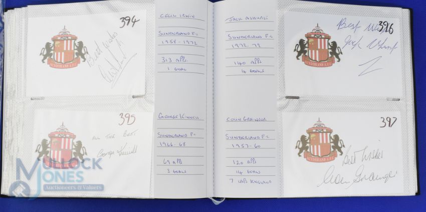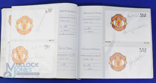 Volume of Football Player Autographs (individual signatures on white cards) to include Arsenal Stewart Robson, Allan Young, Peter Coy, Stan Charlton, Arfon Griffiths, Dave Hillier, Pat Howard, Arthur Milton, Jeff Blockley; Tottenham Hotspur Fred Sharpe, Andy Sinton, Tony Want, Jimmy Neighbour, Aled Owen, Terry Naylor, Eddie Baily, Raph Coates, Gary Lineker, Jim Iley, Alfie Conn, Ian Walker, Chelsea Ernie Randall, Jim Thomson, Peter Bonetti, Billy Sinclair, Stan Willemse, Joe Fascione, Jim Lewis, Jonny McNichol, Bill Garner, Doug Rougvie, Slyvan Anderton, Derek Saunders, Anthony Barnes; Manchester Utd. Sammy McIlroy, Frank Haydock, Ashley Grimes, Frank Kopel, Wilf McGuinness, Peter Jones, Sammy McMillan, Johnny Anderson (scorer in 1948 FAC final), Alan Gowling, Giciliano Malorana, Johnny Morris, Steve James, Joe Carolan, Phil Bardsley, Don Gibson (Matt Busby son-in-law), Phil Chisnall; Everton Tony Kay, Neville Southall, Martin Hodge, Martin Dobson, Paul Lodge; Liverpool Bill Jones, Alan Banks, Dominic Mathew, Ray Lambert, Charlie Ashcroft, Roy Evans, John Heydon, Steve Staunton, Brad Friedel; Manchester City Adrian Heath, Sven Goran Eriksson, Tony Henry, Peter Bodak, Peter Reid, Freddie Hill, Jim Tolmie, Roy Little, Paul Lake; Wolverhampton Wanderers Ted Farmer, Norman Deeley; Leeds Utd Andy Williams, Glyn Snodin, Terry Yorath; Sunderland Cecil Irwin, George Kinnell, Jack Ashurst, Colin Granger; West Ham Utd Harry Redknapp, Doug Bing, Dudley Tyler; plus others including Newcastle Utd (9), Southampton (10), Sheffield Utd (2), Blackburn Rovers (7), N. Ireland - Derek Dougan, Martin O'Neill, Wales (1), Hull City (6), Notts. Forest (1), Fulham (1), England Ron Flowers, Johnny Haynes, Bill Perry, Sammy Lee, Derby County (6), Sheffield Wednesday (4); Crystal Palace (2) Ipswich Town (12) plus others (14); superb collection in good condition. (160+ in 1 file)