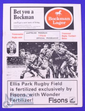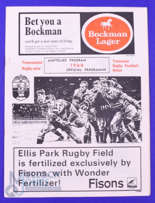 1968 British and I Lions Rugby Programme v Transvaal: Official programme at Ellis Park, 18/6/68. 20pp, VG