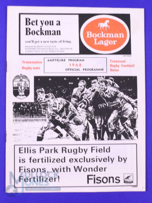 1968 British and I Lions Rugby Programme v S Africa, 4th Test: v the Springboks at Ellis Park, Jo'burg, 27/7/68. 20pp official match programme issued by Transvaal RFU, VG