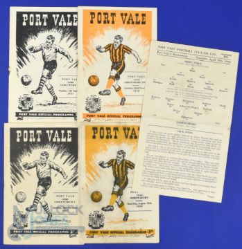 Shrewsbury Town away match programmes v Port Vale 1951/52 (single card), 1957/58, 1957/58 (FAC), 1958/59, 1959/60; fair. (5)