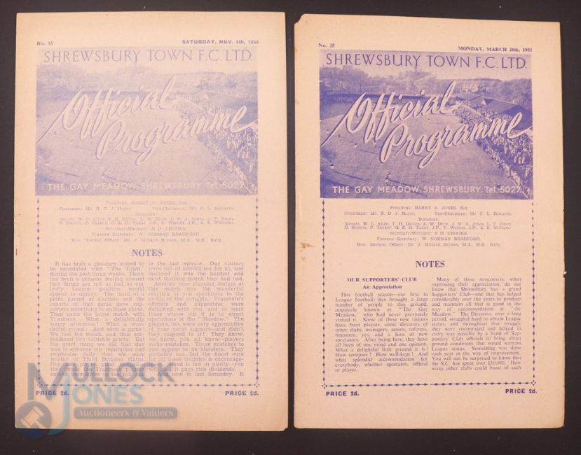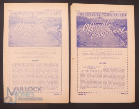 1950/51 Shrewsbury Town Div. 3 (N) home match programmes v Crewe Alexandra (26 March), v Oldham Athletic (4 November); fair. (2)