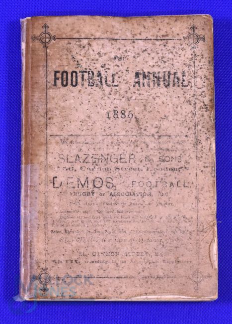 Hugely Rare 1886 The Football Annual, ed C W Alcock inc Rugby: We have not handled a similar in many years: the 19th edition of this seminal publication from the early days of both codes, hugely detailed 220pp with facts, stats and opinion from famous names, and a trove for research and wonder. Hard-covered compact issue, heavily foxed to front cover but v legible to reverse, spine a little loose but holding up well for its close-to-140 years of age. Wonderful period adverts, especially for sporting goods. Try Googling it: or finding another at auction. Great!