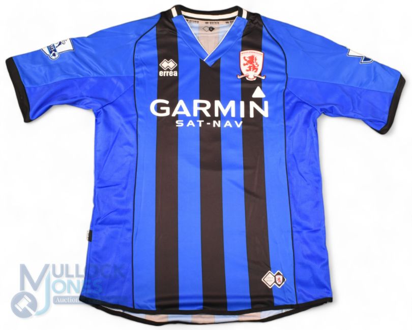 2008/09 Mido No 9 Middlesbrough match worn away football shirt in blue and black, Errea/Garmin, Premier League shoulder patches, size XL, short sleeve - obtained via team personnel