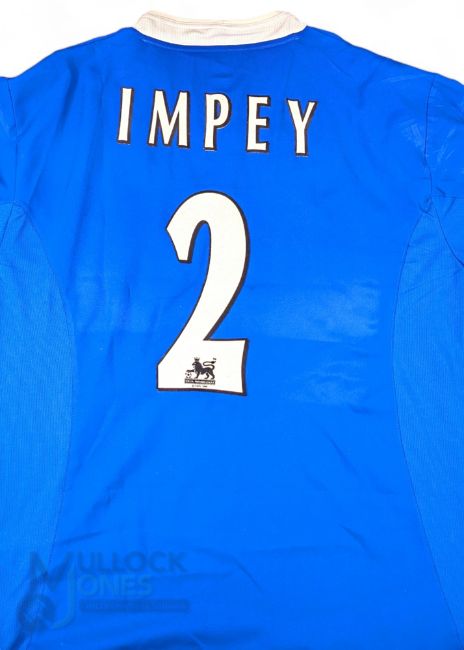 2003/04 Andy Impey No 2 Leicester City match worn home football shirt Lecoqsportif/Alliance, in blue, Premier League shoulder patches, size XL, long sleeve - obtained via team personnel