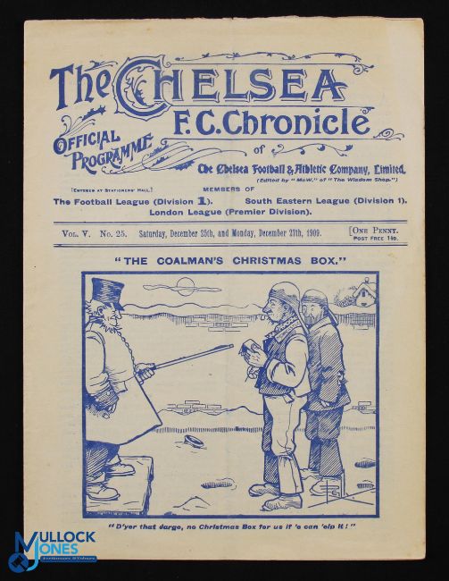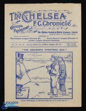 1909/1910 Chelsea v Newcastle Utd Div 1 match programme 27 December 1909; also contains South Eastern League match Xmas Day 1909 v Croydon Common (double issue); fair condition, no writing