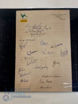 1947 South African touring football team to Australia, b&w photo of the football team, autographed by the players and to the reverse, an Australian FA 1947 Springbok tour letter fully signed by the football team (laminated item in excellent condition) plus 2 further b&w photos of the touring squad, one in football kit, one in fully dressed mode in blazers. G