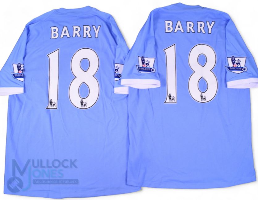 2x 2010/11 Gareth Barry No 18 Manchester City match issue home football shirts - in blue, Umbro/Etihad, with Barclays Premier League shoulder patches, short sleeve, size 42" - obtained via team personnel (2)