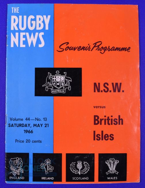 1966 British and I Lions in Australia Rugby Programme: v NSW at Sydney, May 21st 1966, lovely 20pp Rugby News edition, VG