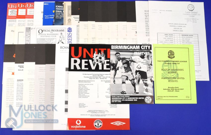 Selection of Manchester Utd home reserve match programmes 1958/59 Notts. County (1st team) (friendly), 1963/64 Huddersfield Town, 1964/65 England Youth (friendly) , 1966/67 England Youth (friendly-has token), 1968/69 Manchester City, WBA, Sheffield Wednesday, 1976/77 Coventry City, Sheffield Wednesday , Blackburn Rovers, Bolton Wanderers (away), 1977/78 Everton, 1978/79 Sheffield Wednesday , Huddersfield Town, Coventry City , Preston NE , 1979/80 Bolton Wanderers, 1980/81 Nottingham Forest, 1981/82 Huddersfield Town, Bolton Wanderers (away), 1982/83 Sheffield Utd. , Newcastle Utd, Wolves , 1983/84 Newcastle Utd, Blackburn Rovers, Bolton Wanderers, 1984/85 Derby County , WBA Chester (away friendly), Stoke City, Nottingham Forest, Bradford City, Barnsley, 1985/86 Leicester City, Barnsley, 1986/87 Leeds Utd, Middlesbrough, Blackburn Rovers, Sheffield Wednesday, 1987/88 Grimsby Town (away), Grimsby Town, Bradford |City, Aston Villa, Coventry City, 1988/89 Sheffield Wednesday, Newcastle Utd, Nottingham Forest, Liverpool, 1989/90 Hull City, Blackburn Rovers, Leicester City, Bradford City, Sheffield Utd, Notts. County, Coventry City 1990/91 Huddersfield Town, Sunderland, Rotherham Utd, 1991/92 WBA, Bolton Wanderers, Sunderland, Rotherham Utd, Bolton Wanderers (away), 1994/95 Nottingham Forest (away), Bolton Wanderers (away), Leeds Utd (away), Bolton Wanderers, 1995/96 Tranmere Rovers (away), Bolton Wanderers (away), Leeds Utd, Bolton Wanderers, 1996/97 Bolton Wanderers Birmingham City (away), Bolton Wanderers (away), Blackburn Rovers, 1998/99 Blackburn Rovers, Bristol City (U21's friendly), Aston Villa, Sunderland, Everton (away), Leicester City (away), Royal Antwerp (friendly), Oldham Athletic (Manchester Senior Cup final) (away); fair/good. (80+)