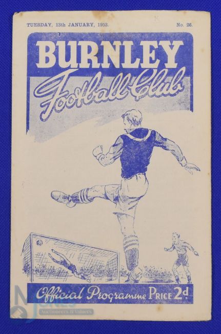 1952/53 Burnley v Portsmouth FAC match 3rd round replay 13 January 1953, 4 page issue; slight mark, small mark, overall fair. (1)