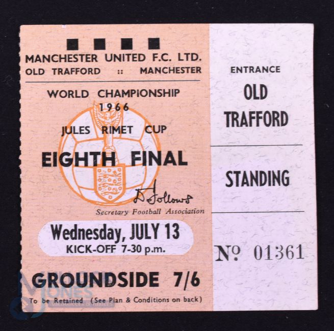 1966 World Cup 1/8 final Match Ticket Hungary v Portugal at Old Trafford 13 July 1966; fair/good. (1)