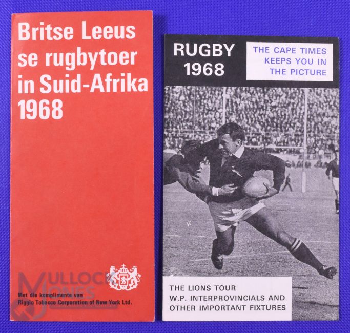 1968 British and I Lions Rugby, Different Itinerary fold over Cards (2): Lexington Tobacco and Cape Times Newspaper fixtures/itineraries for the tour in VG condition
