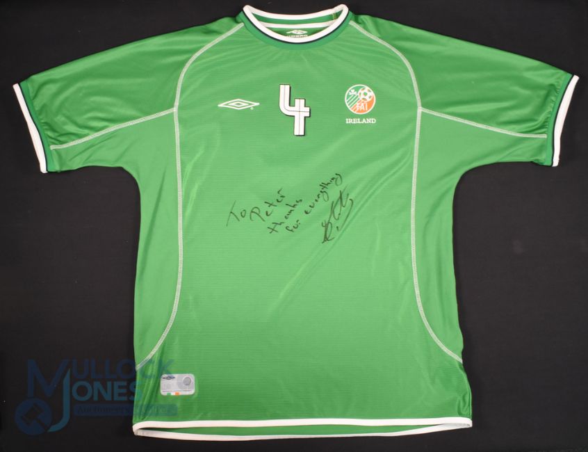 2002 Stephen Kelly (Signed) No 4 Ireland International match issue home football shirt autographed to the front in ink, in green, Umbro, size XL, short sleeve - obtained via team personnel