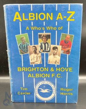 Football hardback book - Brighton and Hove Albion A to Z of Who's Who with DJ by Tim Carder and Roger Harris autographed by 38 on front and back end papers, published in 1997