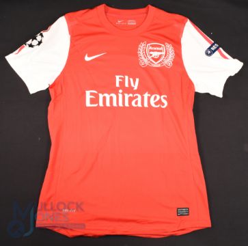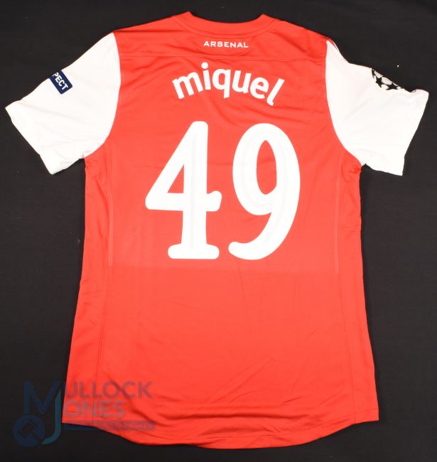 2011/12 Ignasi Miguel No 49 Arsenal match issue home football shirt in red and white, Nike/Emirates, Champions League shoulder patches, size L, short sleeve - obtained via team personnel
