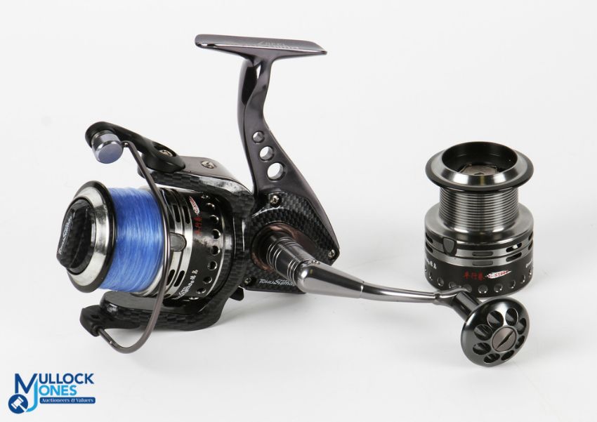 Tokushima Graph X fixed spool spinning reel, good bail, front tensioner with spare spool, very light use, runs well