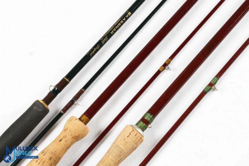 Various Rods - Cassnar full graphite 10ft 2 piece fly rod line #8/10 with lined and snake guides and a pair of unnamed hollow fibre glass trout fly rods 10ft and 9ft rods one with brass ferrules (3)