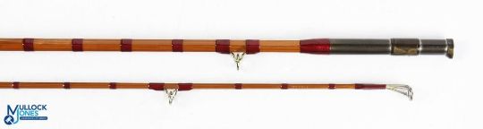 A fine Hardy Alnwick "The Halford Knockabout" palakona split cane trout fly rod 9' 6" 2pc, line 7#, H67481.1965, alloy uplocking reel seat with spike in butt, stud lock joint, looks unused. Cellophane on handle, MCB and label