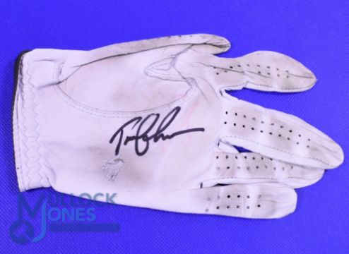 Tom Lehman (1996 Open Golf Champion) players worn signed golf glove - Footjoy leather glove signed to the palm