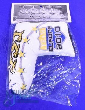 Scarce 2010 Scotty Cameron "Team Europe (Ryder Cup)" leather embroidered putter head cover still in the original packaging - played for the 1st time in Wales at Celtic Manor Golf Resort won by the Europeans - embroidered with Welsh Dragon and European flag
