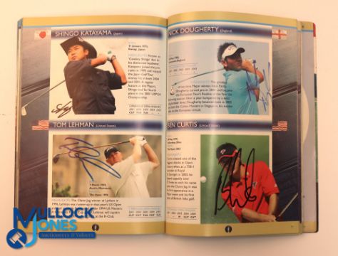 Autographs - multi-signed 2006 Open Golf Championship Programme - signed internally features Peter Thomson, Vijay Singh, Bernhard Langer, Stephen Ames, Darren Clarke, Fred Couples, Luke Donald, Thomas Bjorn, Paul McGinley, Nick Faldo, Rory Sabbatini, Ben Crane, Zach Johnson, Stuart Appleby, Ben Curtis, Tom Lehman, Jose Olazabal, Trevor Immelman, Adam Scott, Colin Montgomerie, Miguel Jimenez, Jim Furyk, Davis Love III et al, x58 total, creasing etc, G overall condition. Private Autograph Collection